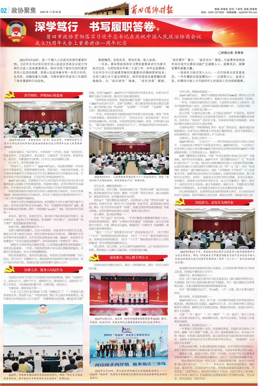 一场场学习研讨深入人心,一次次协商议政求真务实,一件件履职实践温暖民心……以感恩之心、奋进之姿,在莆阳大地上书写新时代人民政协工作的崭新篇章。