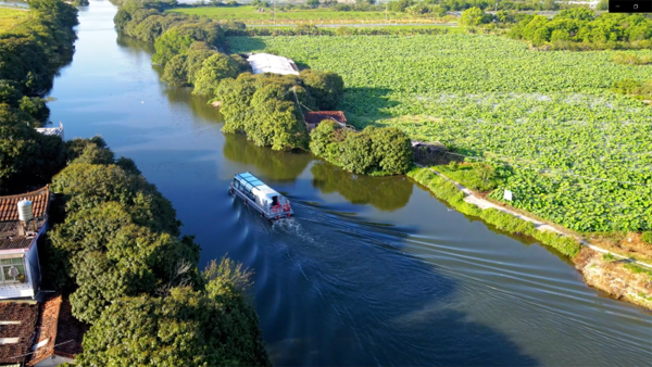 穿梭在荔林水乡里的“水上巴士”。(何晋生 摄)