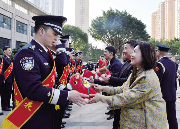 “岁月静好,是因有人负重前行。”9日下午,委员们怀着敬意走进市公安局,向日夜坚守的公安干警送上书籍与福马,表达各界群众的感激之情。