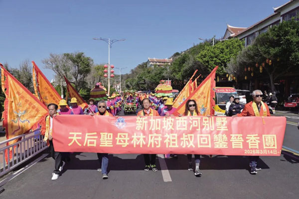林潮阳说:“西河别墅林氏宗亲会于1937年供奉妈祖,2017年湄洲妈祖巡安新加坡,促进了双方的往来。新加坡林氏大宗祠九龙堂家族自治会是新加坡林氏的总会,有18支分会,在当地享有盛誉,西河别墅是其中一支。此行是第三次率队回到湄洲妈祖祖庙谒祖进香,也是首次恭请镇殿妈回到祖庙交流,意义非凡。” (时报记者 翁志鹏 通讯员 程黎婷)
