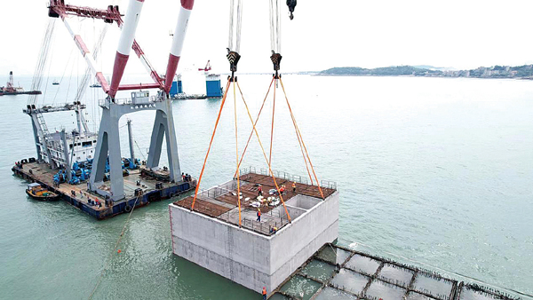 莆田港罗屿作业区8号泊位首件沉箱成功安装