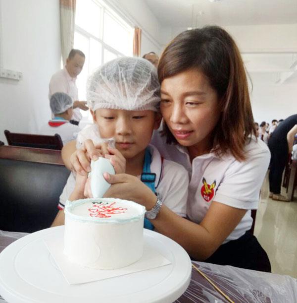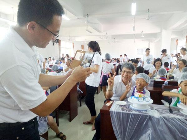 活动现场,志愿者们为孩子们准备了崭新的课外书籍和点读机等,还跟孩子们一起动手制作蛋糕。北岸实验小学四年级一班的林静是第一次自己动手做蛋糕,显得非常高兴:“我从小就喜欢机器猫,一直很想画它,今天刚好有这个机会可以跟志愿者阿姨一起做机器猫蛋糕,我回去要跟我的弟弟一起分享!这是我暑假最开心的一天。”