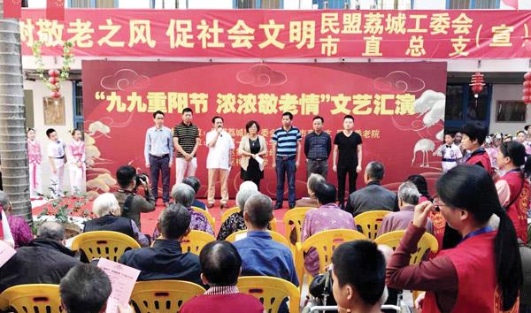 重阳节当天,民盟荔城区工委会和民盟市直总支在同济养老院联合开展一系列丰富多彩的敬老爱老活动,盟市委副主委、荔城工委会主委肖超山,市直总支主委朱锦乐以及骨干盟员参加活动。