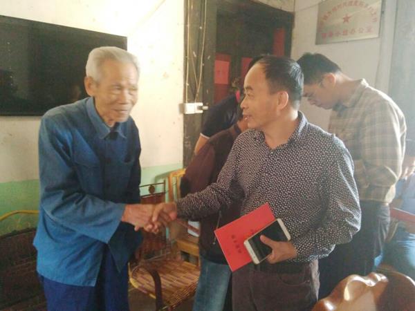 图为城厢食药监分局局长黄光文,在精准扶贫活动中,深入了解扶贫对像详细情况。