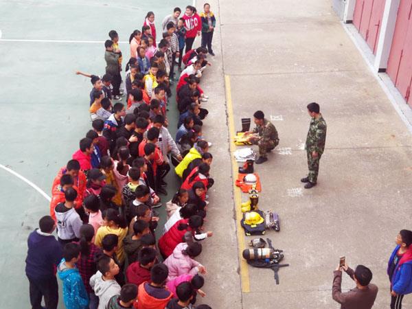 下午4时,300多名学生在教师的带领下来到了目的地,受到了消防中队官兵们的列队欢迎。在教官的带领下,同学们依次参观了消防车、消防设施器材陈列馆、消防文化展览室、训练场以及警营内务等。参观过程,教官详细讲解了火灾现场的逃生知识、防火知识、自救知识以及消防出警等常识。同学们专心听讲,了解到消防车的用途、特点及各种消防器材的使用方法,并亲身体验了消防器材的演示使用,受到了一次全面的消防安全教育。训练场上,消防官兵还为同学们展示了站军姿、正步走等军人风采,让现场同学们惊叹不已。最后,同学们参观了消防战士的内务,一床床整齐的“豆腐块”和摆放整体的物品令同学们大开眼界,颇受教育。