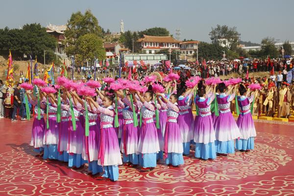 当天,文峰宫广大妈姐信众举行妈祖信俗绕境踩街,随后举行妈祖三献礼仪式。