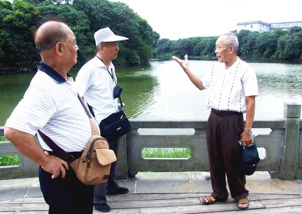 老王要黄老师休息一会儿再走,黄老师说,没关系,他已接待过十多批外来教授、专家,习惯了。图为黄祖绪先生在讲徐塘的故事。(陈宝柱 文/图)