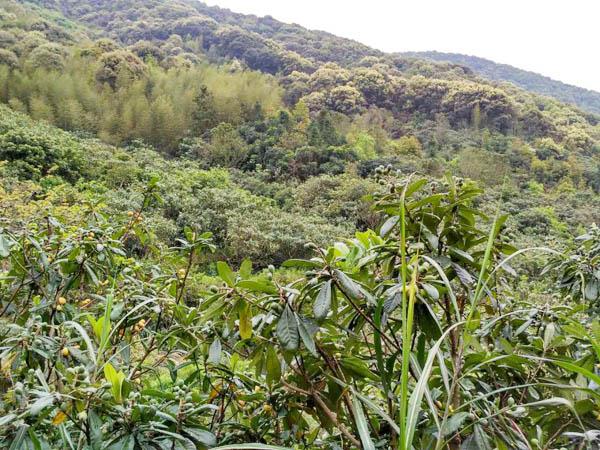 在雷瑞山墓的周围都是层层梯田。有的早已荒芜,有的虽然模样还清晰可见,但也都种上枇杷了。这些梯田面积都不大,并且每块田之间的落差都比较大,有的甚至达到一丈有余。但是,田地周围的石砌却相当精细而坚固,确实可以看出当年拓荒的艰辛。