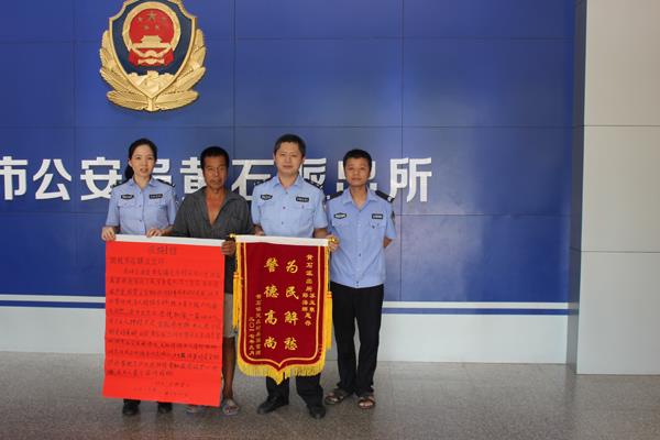 “苏警官、郑警官,谢谢你们,我给你们送锦旗来了!”9月7日上午,荔城区黄石镇村定庄村民吴某雷面带笑容,手拿一面写有“为民解愁 警德高尚”的锦旗以及一封手写感谢信送到黄石派出所社区民警苏玉泉、户籍民警郑海娜手中,感谢两位民警为其儿子解决了户口问题。
