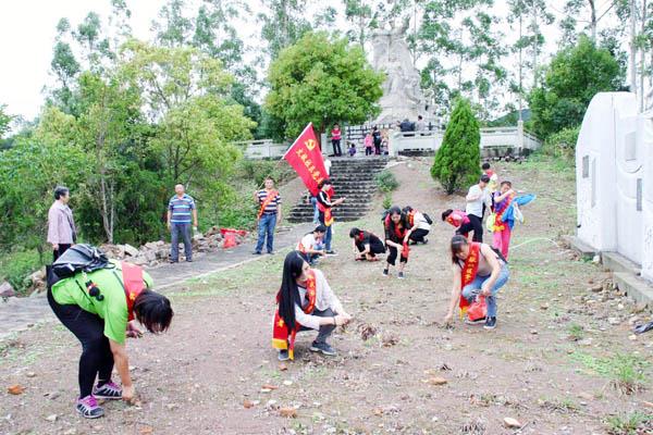 10月15日,荔城区镇海街道文献社区党支部组织青年党员,到革命老区大洋乡闽中司令部开展“喜迎党的十九大,缅怀先烈传基因”主题党日活动。党员们怀着崇敬的心情参观闽中游击司令部旧址,追忆革命先烈的光荣历史,补充革命之钙,传承红色基因,促进“两学一做”常态化,党员们还积极参与党员义务劳动日活动,以实际行动迎接党的第十九大的胜利召开。图为青年党员们在开展整洁环境卫生义务劳动。