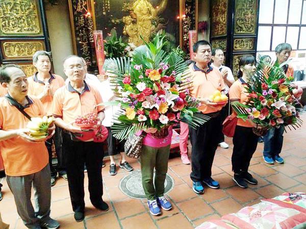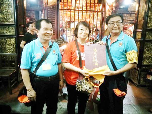 近日,台湾嘉义县大林镇早知朝天宫一行58人由主委刘基旺带队,护驾七尊神尊来文峰宫参访。在旧殿,进香团向文峰宫妈祖行三献礼。之后,陈鹭玲向进香团赠送《妈祖圣迹图》。 (郑协)