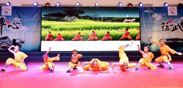 观看南少林寺武僧团的精彩表演。