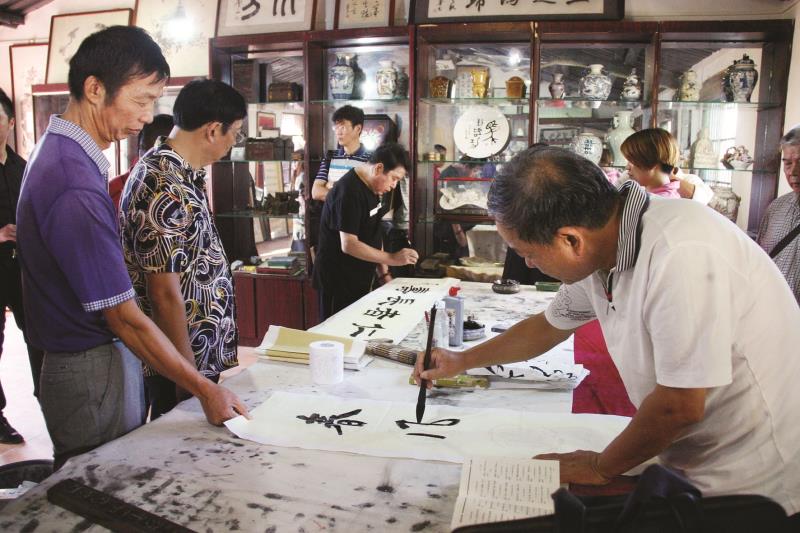 多位书画家,举行“喜迎十九大”书画笔会活动。参加笔会的书画家们共聚一堂,在现场挥毫泼墨用传统的书画艺术,喜迎党的十九大胜利召开。