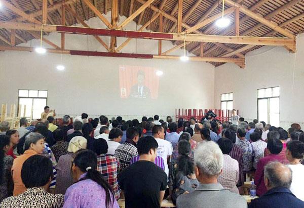 ▲图为仙游度尾镇砺山村组织党员干部集中收看十九大开幕盛况。 陈国孟/摄