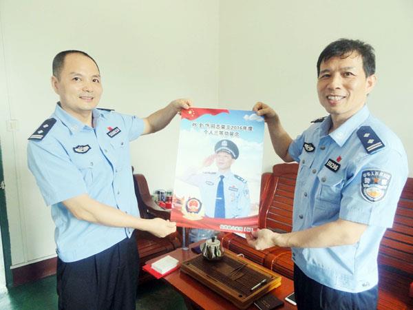 本报讯 近日,仙游县公安局积极开展“送奖上门”活动,局领导分赴分包单位为2016年度立功民警上门送奖。