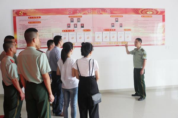 本报讯 日前,市公安边防支队训练基地联合莆田市华林经济开发区管委会党政办及驻地优秀企业员工党员代表联合开展一次以“党性教育”为主题读书学习党日活动。活动中,参会人员一同参观了部队营区、官兵宿舍以及党建文化长廊、警营文化中心等场所,详细了解了训练基地正规化建设、部队党建文化工作等方面内容。在随后的座谈中,大家一起重温了入党誓词,共同学习了《党章》、《习近平总书记在庆祝建军90周年大会上的讲话》。最后,“警地企”共建单位党员代表结合各自单位实际,轮流上讲台讲述各单位党性教育内容、形式及个人对党性的理解,相互交流党建工作经验。 (董小华)