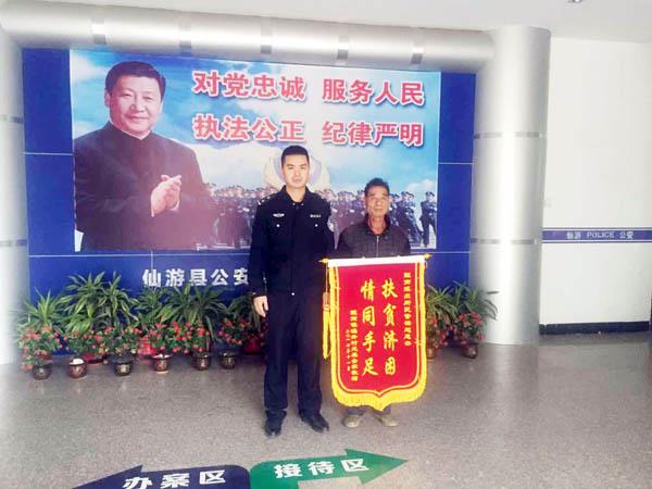 近日,鲤南镇涵井村村民林某美将一面印有“扶贫济困,情同手足”的红色锦旗送给仙游县公安局鲤南派出所,以表达对该所民警真情开展精准扶贫工作的感激之情。