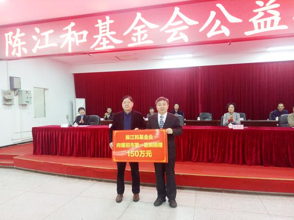 12月15日,陈江和基金会医疗基础设施改善项目捐赠仪式在莆田市第一医院(以下简称“市一医院”)举行。陈江和基金会再次向市一医院捐赠150万元,该笔款项将被用于市一医院基础设施建设和医疗水平的提升。