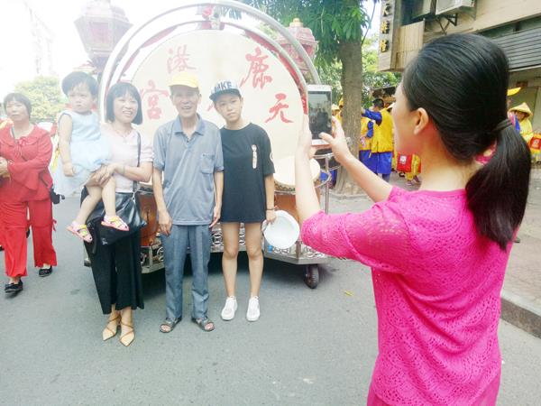 此次巡安活动遵循传统,效法典仪,仪仗队鸣锣开道,彩车陪驾,沿途各地组织迎驾护送文艺踩街活动。两岸妈祖巡安所在之处,锣鼓喧天,万众欢腾、万人空巷,喜气洋洋。天气炎热,但是也抵挡不住信众的热忱。家住延宁宫附近的李大妈听说妈祖巡安要驻驾在延宁宫,一大早就守在延宁宫:“这一次有6尊妈祖金身参与巡安,还有一尊是台湾的‘黑脸’妈祖,真是难得一见啊!我这老婆子肯定要来凑凑热闹,还要祭拜妈祖、给妈祖‘挂豆’,为家人祈福。”