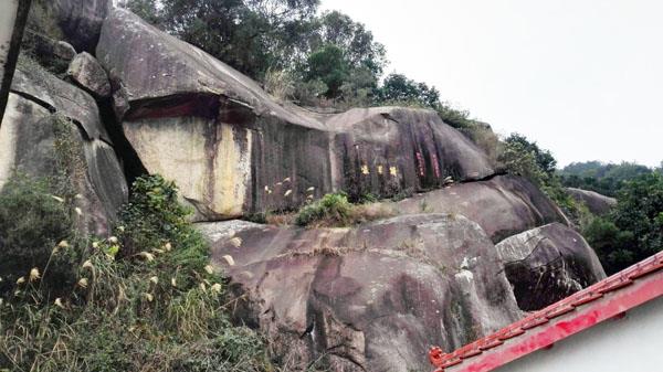 将军山的大岩石刻着“将军岩”三个大金字,旁边金字对联为“触目云烟上下,回头水石去留”。今天有幸能看到将军山这块大岩石及大金字对联,还得感谢一个人。这人叫吴福水,上世纪九十年代任莆田县公安局副政委兼莆田县文物管理委员会副主任。当年,他回前黄村老家,忽听到对岸西许村炸大石滚来轰隆隆的响声,心里叫道“不好,又打大石了”,急忙开车到西许村,爬到将军山半山,一见炸大石的正要炸开将军岩大岩石,忙叫喊阻止“停下,停下,不准打石!”炸大石的在将军岩上头一看,一个穿便衣的男子在下边叫喊着呢,也不管不顾,继续打石。老吴见状,急忙掉转头,将车开回去穿上公安局制服,叫上司机急速开车又转回来,再爬上将军山半山腰,当空就“呯”一声放了一枪,打大石的吓得一愣,一看,是个警察开枪!将军岩右侧大岩石刚刚打一半半,赶紧就停下了。老吴喝令:“那块大岩石是文物,不准你们再打!”就这样,这块大岩石保住了。据说,柳园的“出米岩”大石也是这般保护下来的,华亭城隍庙的保护也有他一份功劳。