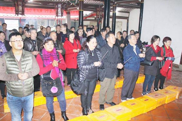 近日,由马来西亚总会名誉会长、拿督王鸿兴先生,率领的马来西亚王氏后裔宗亲恳亲团一行12人,在广东省汕头龙湖外砂王氏大宗祠诒穀堂理事会,副会长王树泉的的陪同下,来莆开展为期二天的拜祖恳亲联谊活动。图为马来西亚恳亲团在榜头镇云庄崑山王氏大宗祠中举行拜祖仪式。(子木)