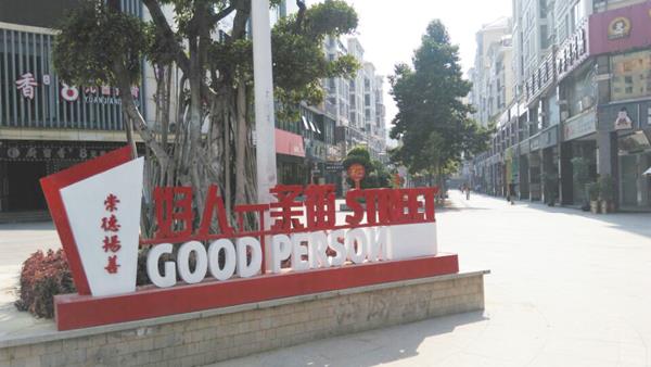 图为鲤中步行街及鲤中广场的公益广告,成为亮丽的城市风景线。