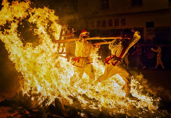 闹元宵,家家户户厅堂摆设香案,焚香放炮,化“贡银”,烧柴草,祈求来年日子更红火