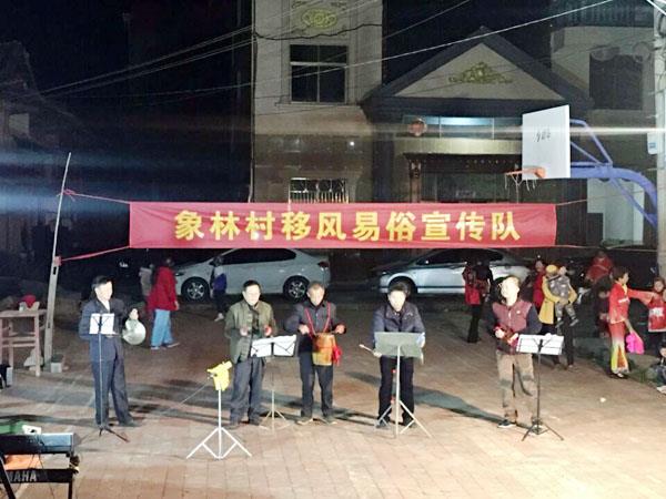 可要治本就必须打好移风易俗的“特色宣传牌”,才能让村民从心底里接受移风易俗新气象,带动整体风气向善向好,让移风易俗成为乡村文明生活新常态。针对合家团圆的春节是各种民俗活动、庆典活动的“高发期”,该镇纪委和文明办邀请象林村两委干部及其村平安协会牵头组建了移风易俗宣传队,排练了一批移风易俗题材的乡土气息浓厚、具有仙游地域特色、群众喜闻乐见的小品、快板、广场舞、扇舞等文艺节目,并于1月22日起在象林村各个村组开展巡回演出,让群众在精彩的节目中潜移默化的认同移风易俗工作,增强做好移风易俗工作的自觉性,受到群众的热烈欢迎。
