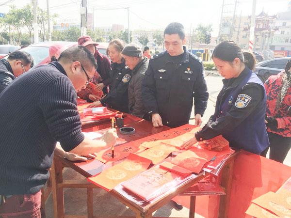 本报讯 红红的春联,浓浓的年味。春节前夕,东庄派出所组织莆田二十八中、东庄中心校的书法老师在秀港中大道邮局门口开展“教师下乡义务写春联”活动,为前来群众现场赠送春联。虽然当日天气寒冷,但活动现场却墨迹飘香、人头攒动。书法老师们个个精神抖擞、挥毫泼墨。一会功夫,一幅幅苍劲有力、吉祥喜庆的春联,在他们的妙笔下熠熠生辉。火红的春联,喜庆的寓意寄托了人们对新年的憧憬,群众奔走相告,纷纷前来求联。大家一边排队等候着,你要一副春联,他要一张“福”字,一幅幅喜庆春联成了抢手的“精神年货”。当天风大,东庄镇的网格员也前来帮忙晾春联、打包春联等,活动现场一片喜气洋洋。 (陈宇婷 林锦堂)