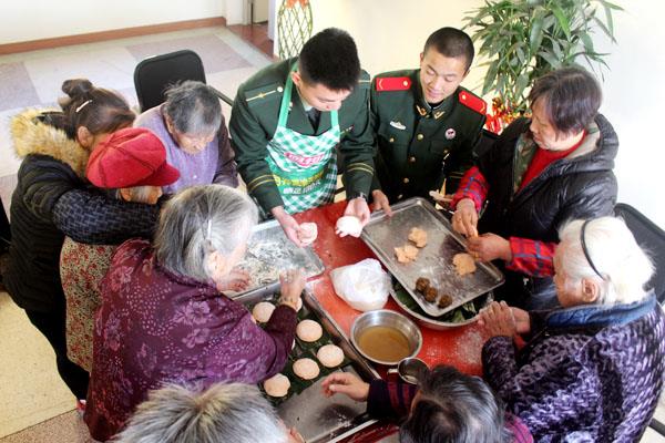 本报讯 红团是莆仙地区的特色小吃,过年时家家必做,寓意着喜庆、团圆。但在春节这个万家团聚的重要时刻,也有很多人因为职业、距离等原因无法回家团聚。江口边防派出所的官兵今年春节虽然不能回家和亲人团聚,但他们与辖区养老院的老人们一起度过了一个难忘特别的春节。
