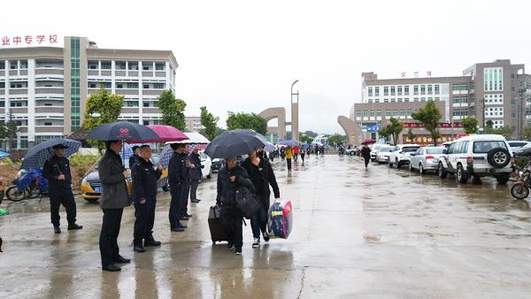 春节前,寒风凛冽、冬雨刺骨,风雨中,涵江区江口派出所蔡光辉等四名警官及片区辅警,冒雨伫立莆田华侨职业中专学校校门口,护送完成期末学业考试的学生平安回家。