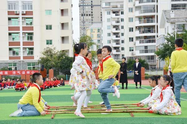 主题教育活动展演精心挑选了以本次读书活动为主题的《附小礼仪操》表演、“竹竿舞表演”“英语歌曲联唱”等节目,将活动推向了高潮。最后,全校师生按年级分场地进行特色活动:有一年级与四、五年级联合的“跳蚤书市”,二年级的“击鼓传诗”,三年级的“竹竿舞”,整个操场成了校园版的“儿童乐园”。 (温颖 刘祥贞)