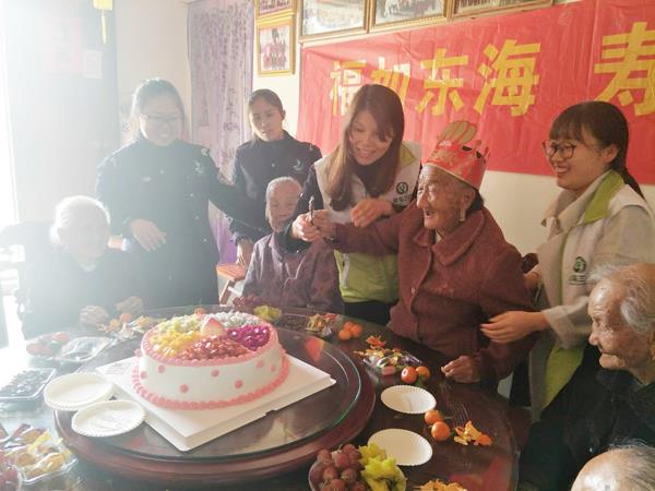 日前,月塘镇坂尾社区居家老人许亚九过90岁大寿,秀屿区居家养老服务中心、社区部分居家老人、坂尾网格站全体“格格”一起为她过生日,“格格”们先给她梳妆打扮,换上新衣,戴上新耳环等,随后大家围坐一起点上蜡烛,共唱生日歌,老人在欢乐的生日歌中许下自己的心愿,大家并祝她:福如东海,寿比南山,老人脸上绽放出幸福的笑容,并连声道谢。 (时报记者 林锦堂 通讯员 许珊)