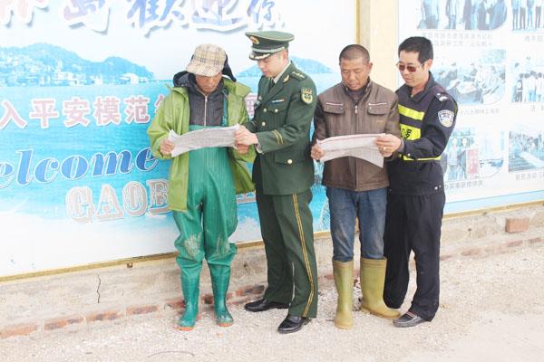 为进一步学习宣传“两会”精神,有效解决辖区筶杯岛民因进出不便,信息接收渠道狭窄,对时事动态掌握不及时的实际困难。日前,田边边防派出所联合筶杯村两委组织开展“两会”精神宣传活动。该所与村两委通过座谈讨论、交流心得等方式,彼此借鉴在学习全国“两会”精神活动中的先进做法,互相取长补短,促进共同提高。随后成立“两会”精神宣传服务小分队,走家入户,通过和岛民一起看报讨论、浏览网页、观看视频直播等多种方式,重点讲解与岛民切身利益相关的方针政策,把岛民密切关注信息传递出去,把会议精神真正送到岛民的心坎里。(张贞欢 季民广 林锦堂)