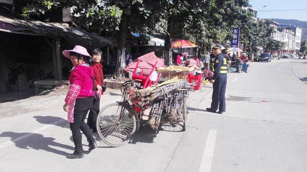 S211线萩芦镇东张村的道路两侧流动餐车、水果摊、青菜摊熙熙攘攘,占去整条车道,俨然成为一个“公路市场”,现场塑料袋、烂菜叶等垃圾被随意丢弃,严重影响市容市貌。更有甚者,不少群众不惜逆行前来光顾生意,造成该处交通混乱。针对该现象,涵江公路分局许可所联合涵江区交通执法大队对该处占道贸易行为开展专项整治。执法人员对在场摊贩进行了严肃批评,随后又对其耐心进行法律法规普及和安全知识教育,先劝离了部分流动餐车,随后协助东西较多的摊贩收拾摊位。经半小时左右的整治,被占用的车道重新腾出,执法人员又通知萩芦公路站养护人员前来该处进行保洁工作,彻底恢复该处公路的畅通整洁。之后,执法人员不忘教育身边前来买卖的市民:“食材购买一定要到合法合规的摊位上去购买,切不可贪图方便,进行占道买卖。一是占道贸易存在较大安全隐患,二是公路上尘土飞扬,不卫生的食物吃了也不放心。”(陈勰挚朋)