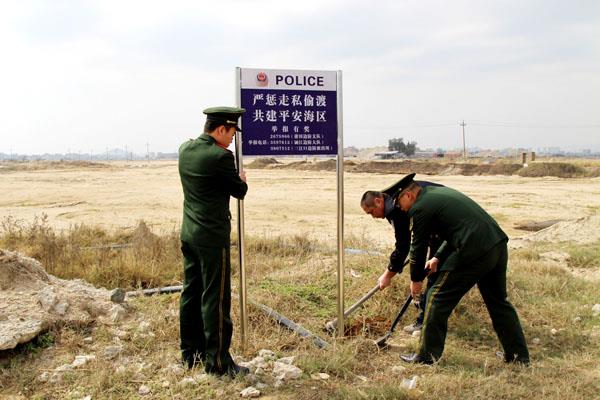 连日来,三江口边防派出所结合日常走访,积极向群众宣传沿海管防政策法规,引导教育群众认清走私违法犯罪行为的危害性,提升群众共同参与积极性、主动性。同时,该所在辖区各码头、风险点、必经路口等显要位置安插举报宣传牌、悬挂横幅,营造出了强大的管防声势。(吴思奇 林锦堂)