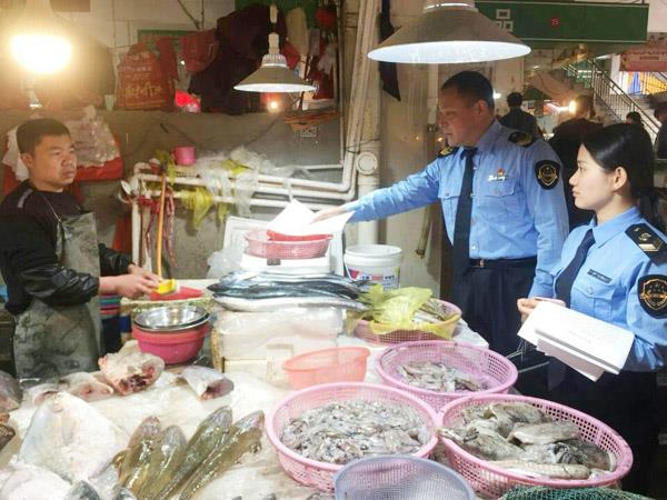 本报讯 为规范水产品市场秩序,保障市民水产品消费安全,近日,龙桥食药监所在分局的统一部署下,根据《福建省食品药品监督管理局办公室转发国家食品药品监督管理总局办公厅关于一起食用有机磷农药污染鱼引起中毒事件的通报的通知》的指示精神,结合辖区实际,加强隐患排查,加大宣传力度,扎实开展水产品市场食品安全专项整治行动,保障辖区食用农产品质量安全。