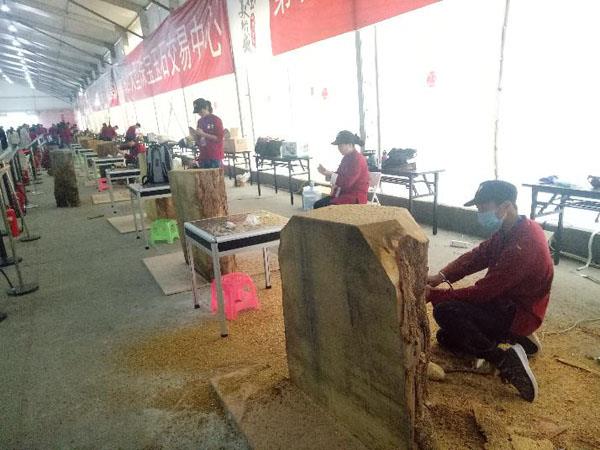 记者在现场看到,选手们正俯首认真创作,敲、凿、雕、琢,电锯声传遍每个角落。他们在木材上深雕细缕出一个个生动的“木雕表情”,各地不同的雕艺风格也在这个空间内不断敲击碰撞。一块原始的木头,经过木雕大师无数刀和笔波光轻舞的瞬间,将转成为一件精巧、雅致的艺术珍品。来自甘肃的甘博,从事木雕行业20余年,这次比赛的作品还特地选择了跟艺鼎杯相关的主题:“我非常重视我的这次比赛,每年我都有关注我们艺鼎杯的赛事,‘艺鼎杯’现在已经是我们业界一个权威的比赛,今年是第十届了,因此我这次创作的作品叫‘艺言九鼎’,大概是一个大汉正在雕刻创作一个金鼎。”据悉,本届“艺鼎杯”比赛将持续至本月25日,来自两岸的24名选手们须在10天的限定比赛日内现场完成作品一件,最后由中国工艺美术协会组织业界权威专家组成评委会,评定各个奖项。