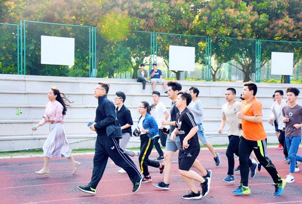 近日,该院工商系党总支书记陈凯带领全系青年学生在操场上跑步。据介绍,“与书记一起跑跑步”项目实施一年来,该系共有454名同学告别“宅”生活,参与跑步,个人的最高跑步里程达309公里,团体总跑步里程大约为10044公里,既增强全体师生的体质,又培养挑战自我的精神,丰富了业余文化生活。 (陈各辉 余伟锋)