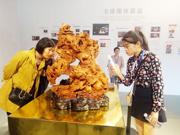 本报讯 还记得去年厦门金砖会议上,让普京拿放大镜认真端详的那件木雕作品《事事如意》吗?在本届艺博会上,这件作品更是成为“网红”,参观的市民更是排队拿起放大镜,领略莆田木雕的精妙绝伦。
