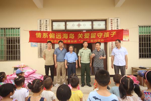 为深入贯彻党的十九大会议精神,进一步做好农村留守、困境儿童关爱保护工作推进工作,在“六一”儿童节即将来临之际,一场以“情系偏远海岛 关爱留守孩子”为主题的庆“六一”慰问留守儿童志愿服务活动在秀屿区南日镇小日小学举行。本次活动由市救助管理站、十八列岛边防派出所联合主办,福建省兴邦泰商贸有限公司、莆田长青志愿者协会协办,南日镇小日小学承办。