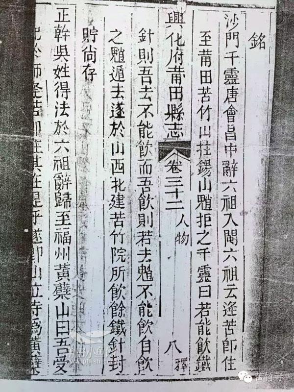 (宋李俊甫《莆阳比事》卷之七、明何乔远《闽书》卷之二十三·方域志·壶公山、清乾隆《兴化府莆田县志》卷三十二·人物仙释传、民国《兴化府莆田县志》卷三十三·方外传、《莆田县宗教志》)(黄祖绪)