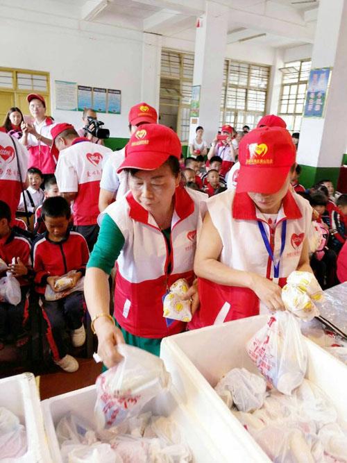 在当日上午9点开始的活动上,协会不仅为这些留守儿童带来了蛋糕、水果、汉堡等各色儿童食品,还现场分发了包括作业本、文具盒、书包和生活日用品等爱心物品68份,给学校捐献了篮球3个、乒乓球类拍3副、羽毛球拍3副、跳绳10条等体育用品,及由圣山小学提供的300本新图书。同时,仙游团县委慰问8名特困留守学生。