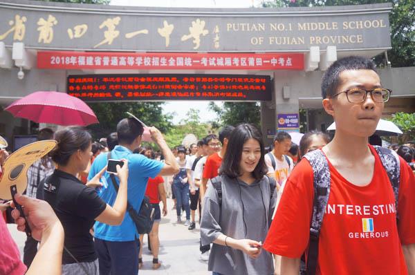 上午8:00,记者在莆田一中考点看到,这些00后考生神情淡定,有序踏进考场。场外的家长们站在校门外等候,不停地往学校里张望,不少家长都拿出手机为孩子拍照,记录下人生的珍贵一刻。考场外,义工、志愿者、交警、食药监、爱心商家等工作人员都不曾缺席,以他们的方式护航高考,为每一位高考学子营造和谐的考试环境。