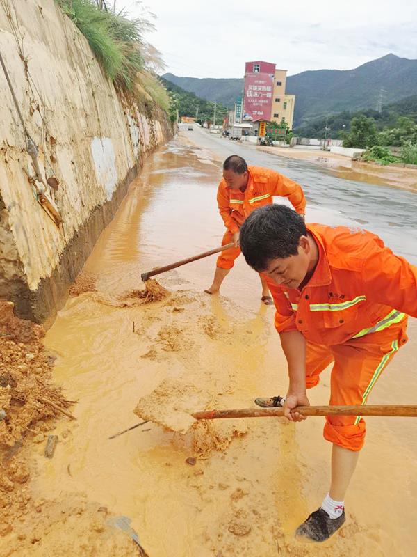 涵江公路分局萩芦班站的养护工人发现后,第一时间在被毁路段设置了安全警示标志,并组织人员、机械进行清理,抢险人员有的利用锄头把泥沙挖起,再用簸箕等工具将掉落在水沟中的粘土一点一点往养护车上送,经过三个多小时的奋战,共清理了泥浆25立方米,堵塞的边沟顺畅了,泥浆积水也彻底清除了,消除了该路段的安全隐患,保障了公路通行安全。(时报记者 翁志鹏 通讯员 林妍妍)