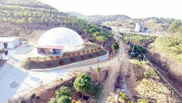 图为正在建设的“鸟巢型”生态科普展览馆