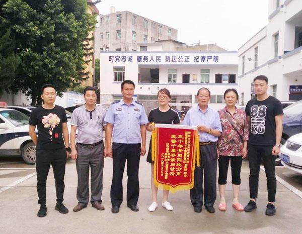 “谢谢,感谢你们的努力与付出,让我们分隔30年之久的亲情能够得以团聚……”,端午节前夕,江西省南昌市向塘镇的老陈一家与分别30年的女儿几天快乐的相聚后,在即将离开莆田,踏上回家前,一家人专程将一面写有“三十年骨肉两地分离 民警千里寻亲闽赣情”的锦旗送到新度派出所民警周甄敢手中,并连声感谢道。