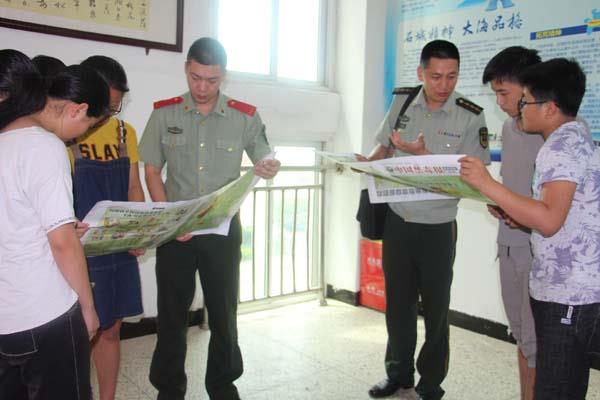 近日,石城边防派出所官兵深入辖区开展禁毒宣传活动。官兵走进校园及村委会,利用横幅标语、派发禁毒宣传资料等载体,广泛宣传禁毒知识。同时也向辖区群众和学生讲解海洛因、鸦片、冰毒、摇头丸、“K粉”等毒品的种类特性和识别方法,使群众深刻了解到毒品犯罪对个体、家庭、社会所带来的巨大危害以及如何预防抵制毒品等知识,进一步增强群众禁毒意识。 (刘晓冬 林锦堂)