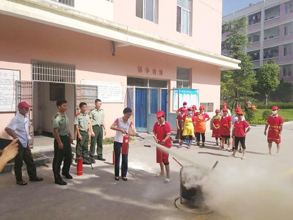 本次消防应急演练模拟“火警”现场,营造了逼真的演习效果。随着一阵烟雾的升起,消防报警声急促响起,全校近两千名师生在各班主任及楼层导护师的指引下,用湿毛巾捂住口鼻,弯着身体,按照既定的逃生路线,快速有序地撤离到学校操场。随即各班级清点人数,并层层向上汇报。整个演练活动紧张有序,用时不到3分钟。接着,江口消防中队的官兵对全体师生从如何报火警、火灾的预防、火场自救及逃生方法等消防安全基本常识进行了讲解。尤其对灭火器的使用步骤及运用技巧,消防官兵邀请部分师生进行现场演示,使师生们正确掌握了使用灭火器材扑救火灾的操作方法,有效地提高了师生的安全意识和防火技能?。