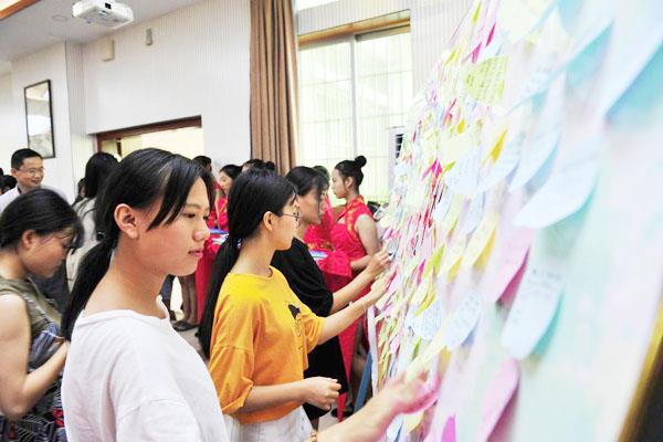 青春不散场。离校典礼暨成人礼仪式在《栀子花开》深情而依恋的歌声中结束,所有的不舍、感激、祝福、憧憬和期盼都定格在这美好瞬间。离场时,同学们郑重地把“心愿条”贴上离校留言板。一张张纸条,一句句肺腑之言,是即将起航的学子们对母校深深地眷恋,是即将起航的学子们留给母校最好的回忆。